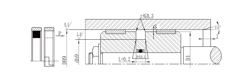 | नोट: 1। दबाव> 60MPA के लिए, सील रूट क्षेत्र H8/F8 मिलान सहिष्णुता का उपयोग करता है, और अल्ट्रा-हाई प्रेशर सील Smax <0.05। 2। सिलेंडर व्यास> 30 मिमी के लिए, इसे बंद खांचे में स्थापित किया जा सकता है। कृपया हमारी कंपनी से परामर्श करें। | ||||||||||
